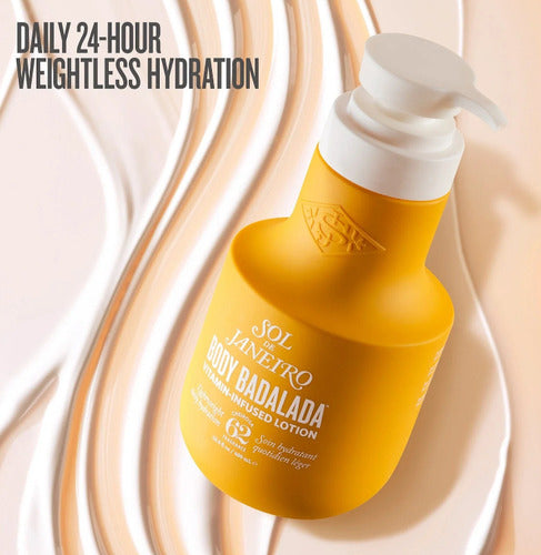 La Loción Corporal Badalada de Sol de Janeiro es la elección perfecta para quienes buscan una hidratación profunda y duradera. Con una consistencia cremosa, esta loción se desliza suavemente sobre la piel, dejando una sensación de suavidad y frescura. Su fórmula está enriquecida con ácido hialurónico, conocido por su capacidad para retener la humedad, proporcionando un cuidado intensivo que transforma la piel seca en un lienzo radiante y saludable.